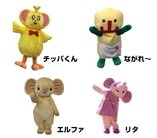御当地キャラクターのエルファ&リタ、チッパくん、ながれ~も参加するよ!