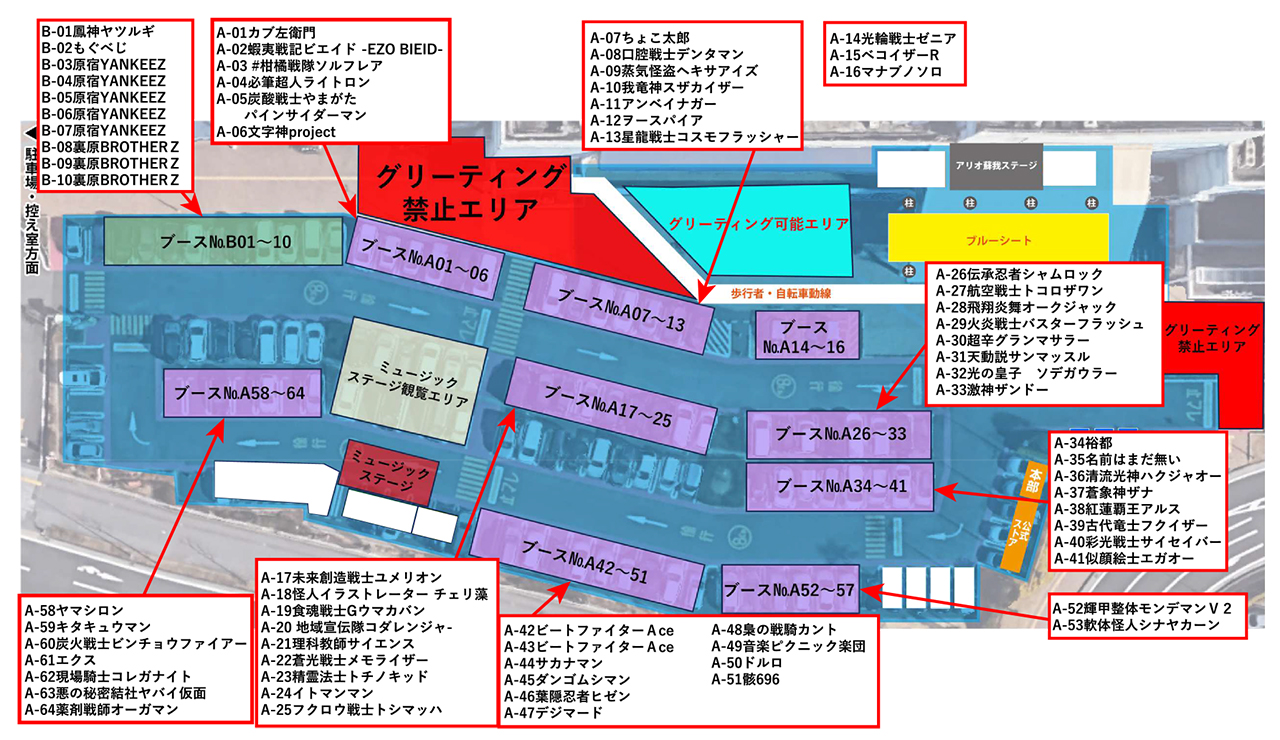 - 観覧スペースは自由席となりますが、荷物を置いての場所取りは禁止(トイレ等はのぞく)とさせていただきますのでご了承ください。